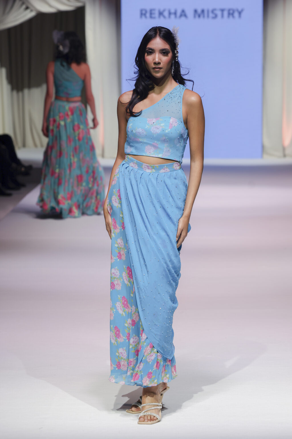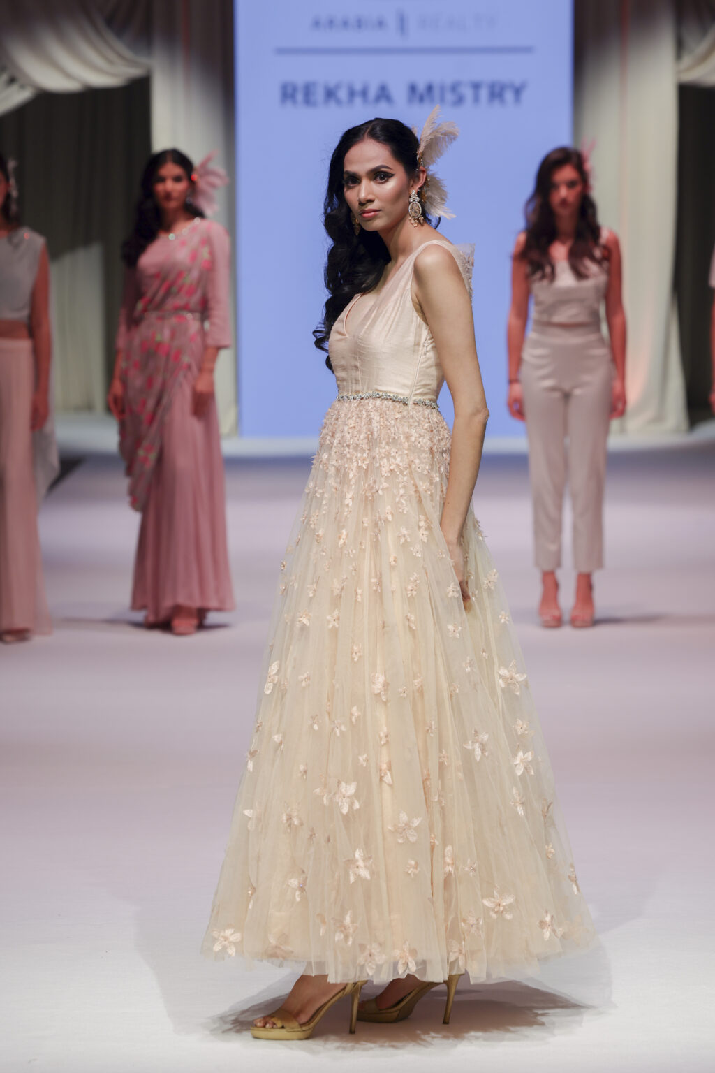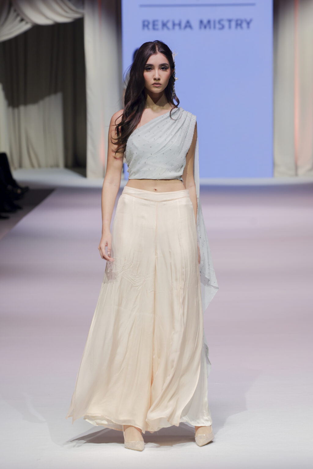 Rekha Mistry is a luxury fashion label that reimagines traditional Indian occasion wear through a contemporary British lens, creating elegant, versatile pieces that blend heritage craftsmanship with modern silhouettes. Inspired by her Indian roots and shaped by British sensibilities, Rekha Mistry’s collections celebrate rich fabrics, intricate embroidery, and timeless design, offering refined occasionwear that resonates with the modern, fashion-forward woman. Each garment effortlessly bridges cultural tradition and contemporary style, making the label a distinctive presence on the India Fashion Week London runway. @rekhamistrydesign
